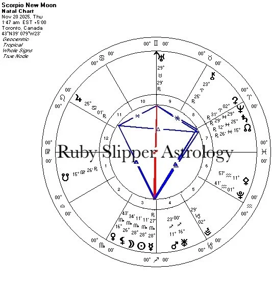 Em 20 de novembro de 2025, uma Lua Nova em Escorpião trará um período de novos começos, marcado por temas como segredos, recursos ocultos, intimidade e intensidade. A conjunção com Mercúrio retrógrado intensifica essa energia, sugerindo um novo capítulo influenciado por revelações profundas e mensagens do passado. Essa combinação atua como um catalisador para verdades essenciais, impulsionadas por questionamentos e autoexames focados.